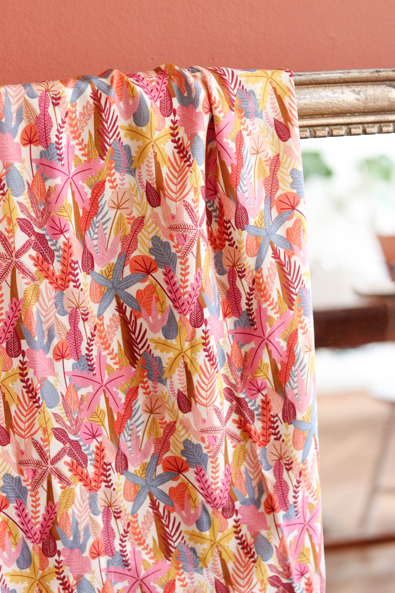Sur les étagères de la mercerie, vous trouverez les produits qui vous permettront de créer pour tous vos projets : tissus d’éditeurs (Lise Tailor, see you at six, Eglantine et Zoé, Poppy…), différentes qualités de tissus (coton uni ou imprimé, double gaze, jersey uni ou à motifs, sweat, viscose…)